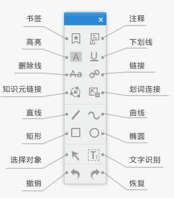 标注共有十种,分别是直线,曲线,矩形,椭圆,文本注释,高亮文本,下划线文本,删除线文本,知识元链接和书签。