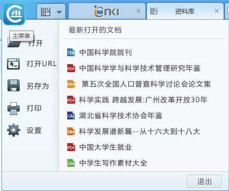 启动程序后,可点软件左上角图标打开菜单栏,点击“打开”按钮,开始浏览或者说是阅读该文档,这个文档必须是以下后缀名的文件类型CAJ、PDF、KDH、NH、CAA、TEB;并且可以再次对文档进行另存、打印等操作。