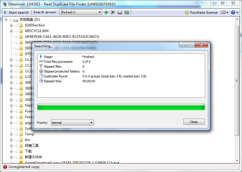 Detwinner是一款免费的可以找出硬盘上一个或者多个目录中的重复文件的重复文件扫描器。Detwinner可以快速查找指定磁盘上的重复的图片、音频、视频、文档、应用程序或任意文件,查找并删除重复文件,能有效的释放出硬盘空间,非常实用。