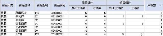 (该图可以清晰地看出商品名称为"长T恤"的商品"库存数"还剩1,需要及时采购进货了。)