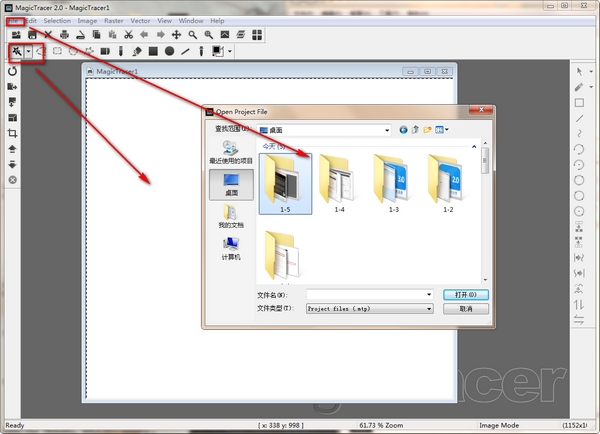 三、导入已有的任务或者自建新的项目,通过左上角的鼠标图示进行光栅矢量转换
