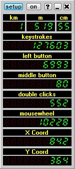 它计算鼠标光标在屏幕上移动的距离以及鼠标按钮被单击的次数。此外,键盘上的击键次数也会计算在内。