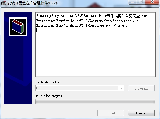1、在PC下载网下载易芝仓库管理软件电脑版压缩包,然后进行解压,解压后,双击exe程序,进入安装界面,点击Install