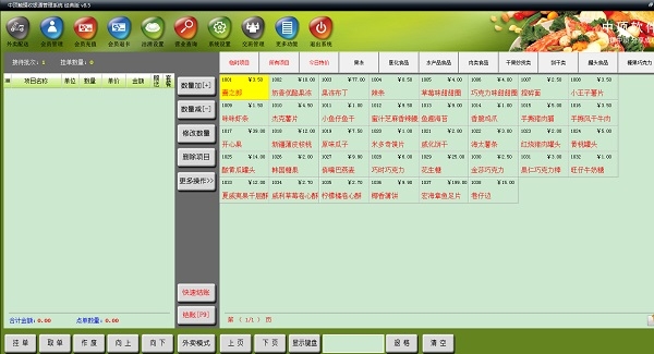 (1) 增加:商品默认数量为1,可通过快捷键‘+’或‘-’来快速增加或减少消费数量;