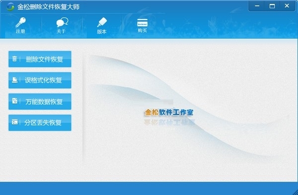 金松删除文件恢复大师最新版是款非常安全可靠且功能强大的将电脑误删文件恢复的工具,金松删除文件恢复大师最新版提供了删除文件恢复、误格式化恢复、万能数据恢复以及分区丢失恢四个模式供用户选择,且金松删除文件恢复大师支持硬盘、U盘的文件恢复。