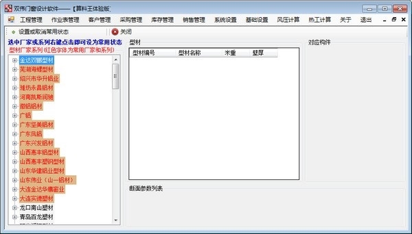 软件内还集成型材、五金、玻璃进销存功能、门窗抗风压计算和门窗节能热工计算;