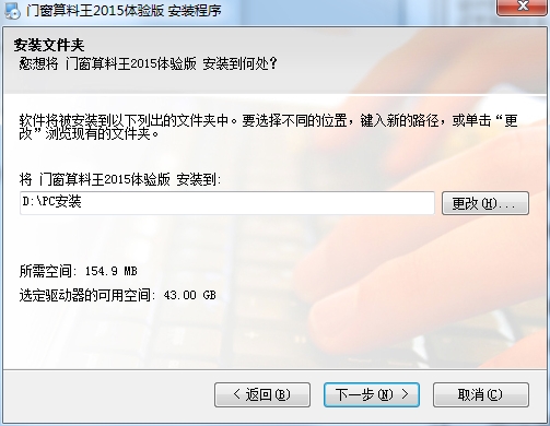3、这里是软件的地址选取,可以默认C:Program Files (x86)门窗算料王2015体验版