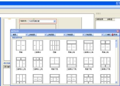 4、选择窗型可根据窗扇数量,上下亮格数,软件会自动筛选符合条件的窗型,选中设计所需要的窗型点击确定即可。