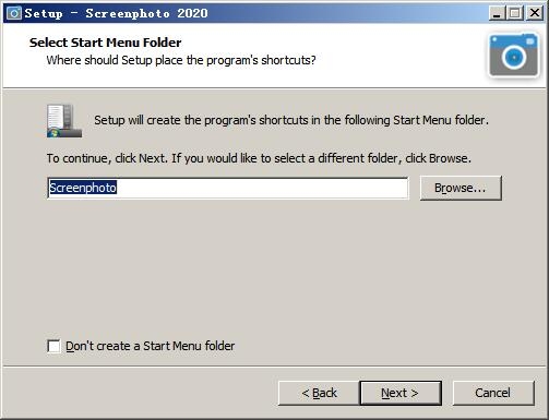 3、继续next选择开始菜单文件夹名称,默认为“Screenphoto”继续next安装就可以了