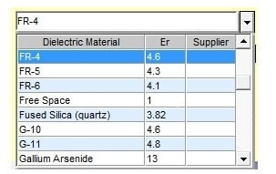 AppCAD内置了大量介电材料库,可简化设计人员的基板选择任务,而无需查找材料常数。 还提供下拉列表以选择频率,角度和长度单位。
