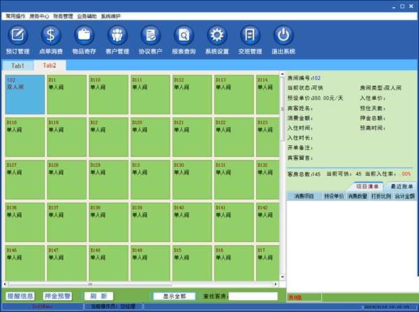 领智客房管理系统中文版是款主要适用于从事酒店服务行业进行量身打造的酒店客房管理工具,领智客房管理系统中文版内置丰富使用的功能,为用户提供前台接待、预定管理、夜审管理、员工管理、会员管理等功能于一体,领智客房管理系统适用范围广泛,该软件可适用于酒店、宾馆、旅馆、招待所等以客房为主的管理者使用。