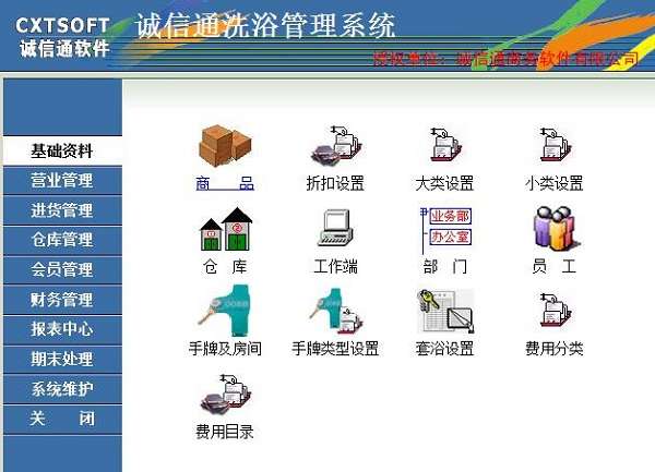 诚信通洗浴管理系统最新版是一款洗浴经营管理软件。诚信通洗浴管理系统最新版包含了商品信息、折扣设置、大类小类设置、仓库管理、部门信息、员工信息、营业管理、进货管理、仓库管理、会员管理、财务管理、报表中心等主要功能。诚信通洗浴管理系统可以随时备份系统中的数据。