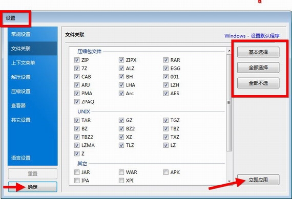 2、选择“压缩包文件”、“unix”等选项;