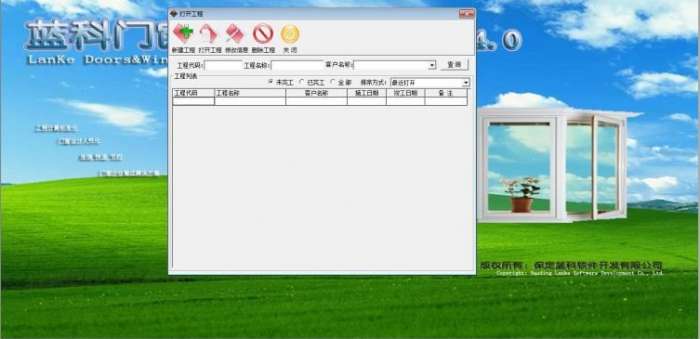 新建工程、打开工程进行修改或浏览历史工程的报表,查看当前工程窗型信息,查看工程报表数据,对当前工程进行型材玻璃优化,修改维护当前工程的窗型,全面掌控整个工程的预算造价成本,对工程安装,生产,服务等环节的控制。