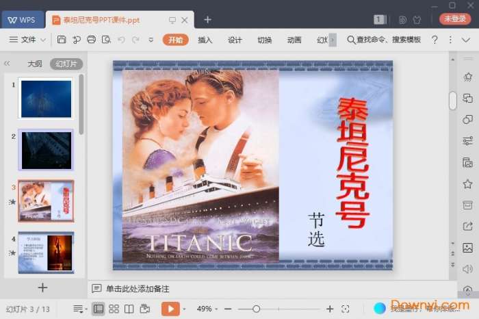 泰坦尼克号ppt课件为学生们提供更多有用的信息,让你在使用的时候可以更加方便的学习。课文是节选自电影剧本,让你在ppt中可以学到很多关于电影剧本方面的内容。如果你需要欢迎来体验!