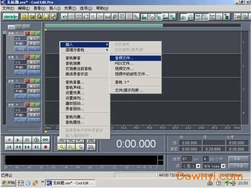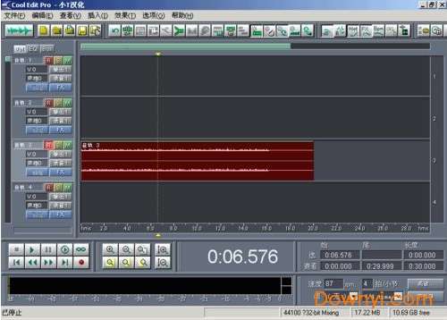 安装好cooleditpro2.0后,再把插件安装到安装目录下的子目录中,新建一个名曰“dx”的文件夹,把所有的插件都安装释放到这里。打开cooleditpro2.0后,会自动建立一个新的工程。界面如下: