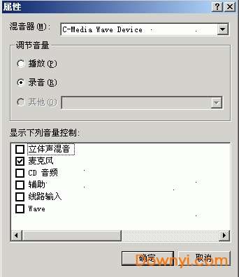 在录音之前还需调整你的“声音与音频属性”,如图:需要把录音项打勾,在mic一栏中选中,其它的不要选择,因为我们要录的只是自己要歌唱的声音。