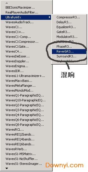8、加混响。我们现在录制的声音还是很干巴的,没有一点混响,现在我们要通过效果-directx-utlrafunkfx中的reverbr3来给你的声音加上混响。