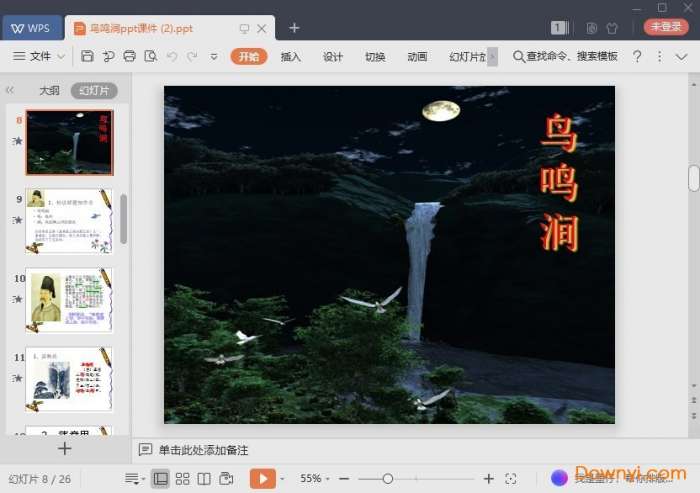 鸟鸣涧ppt课件为你在使用的时候提供非常不错的学习帮助,内容比较多不仅可以比较好的为你讲解各种内容,而且相应的教学内容也是比较详细。欢迎来体验!