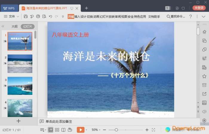 海洋是未来的粮仓ppt课件为你提供了可以直接在课堂上使用的教学版本,让老师在课堂上可以更好的其启发学生。从一开始的海洋图片展示,到后面的各种内容提供。如果你需要欢迎来体验!