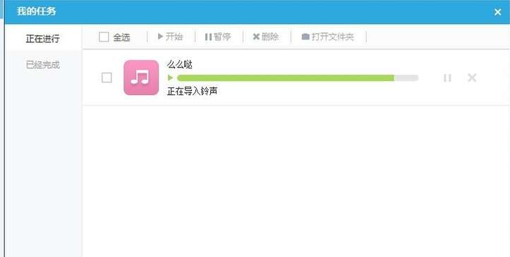 4、点击XY苹果助手下面的任务中心就可以看到正在下载的铃声