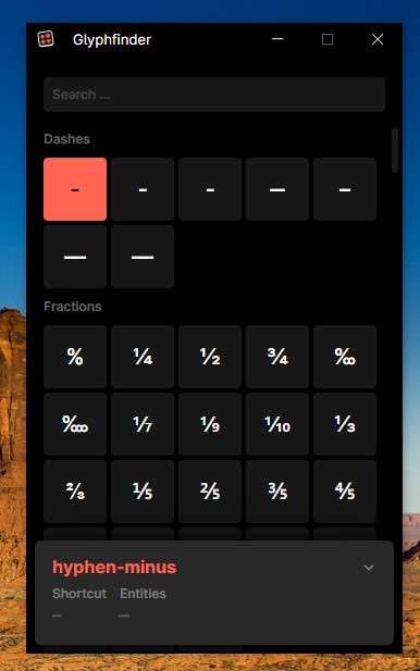 查找几个字形时,没人希望他们的脸上闪过明亮的光。尽情享受Glyphfinder的黑暗主题,这仍然是唯一的主题。