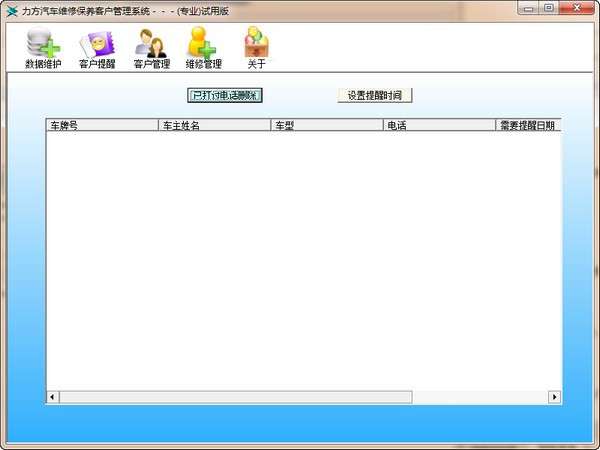 当客户做过一次维修保养后,系统会在设定的提醒时间(默认为90天)后提醒你给客户打电话。“客户提醒”中显示的是需要打电话的客户信息。当你打过电话后,可以选择“已打过电话删除”按钮删除。