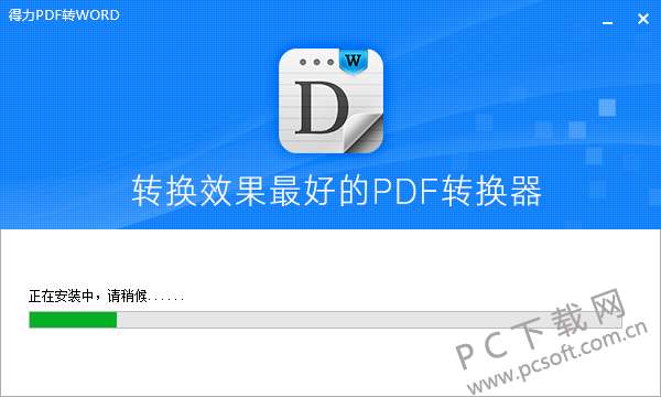 3、选择好安装位置后,点击立即安装选项,得力pdf转word转换器就可以开始安装了,如下图所示,软件正在安装过程中,用户需要耐心等待安装进度条完成,不过安装时间一般都很迅速,用不了多长时间。