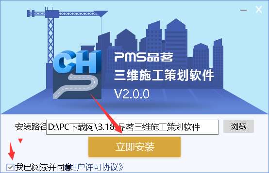 1、在PC下载网下载品茗三维施工策划最新版压缩包,然后进行解压,解压之后得到exe程序,