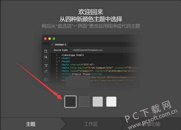 2、欢迎回来,从四个新颜色主题中选择一个。