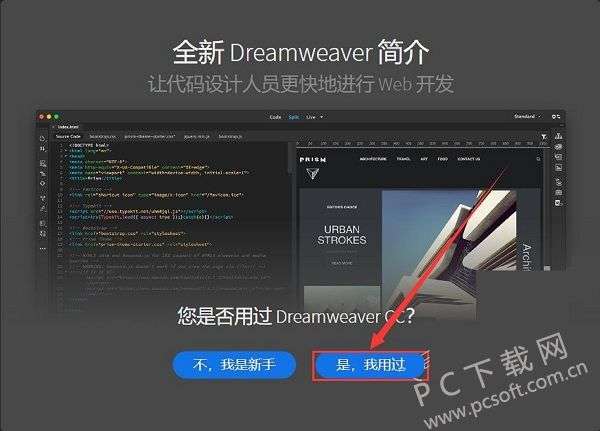 1、双击打开桌面上Dw CC2019的图标,会出现下图所示,点击“是,我用过”。