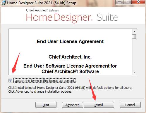 1、在PC下载网下载Home Designer Suite最新版压缩包,然后进行解压,解压后,双击exe程序,进入安装界面,选择Iaccept,然后点击install