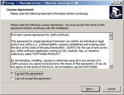 1、双击“PhotoArtista_Sketch_Setup.exe”出现协议,选择i accept