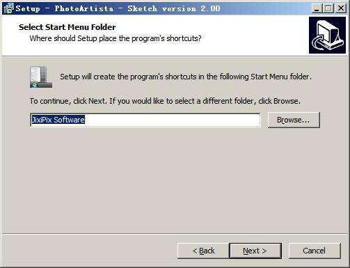 3、选择开始菜单位置,默认为“JixiPix Software”继续next
