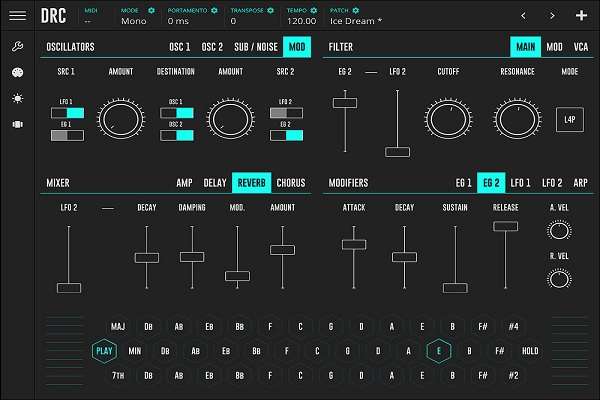Imaginando DRC最新版是一款虚拟模拟复音合成器,旨在还原那些经典的合成器声音,并且让所有想要做音乐的人都可以使用它,无论是菜鸟还是专业玩家。DRC 特别带来了一些大家都喜爱的合成器音色,比如 Minimoog, JUNO,并且提供了少量却又强大的参数控制,用户可以将其映射到转轮或者是推子、旋钮上。