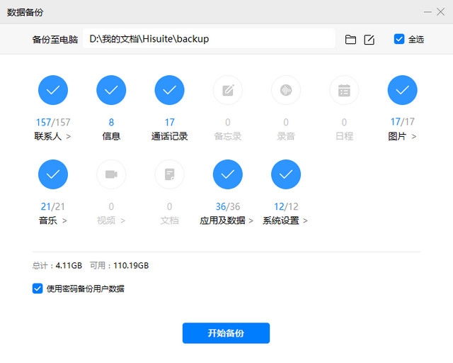 设备上的数据可备份至电脑,支持联系人、短信、应用程序、音乐、通话记录、Email、日程的备份