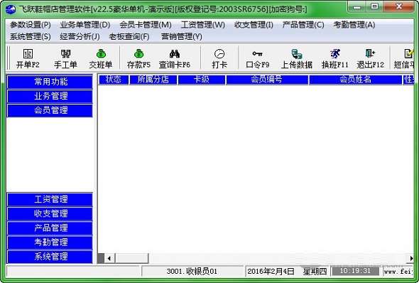 飞跃鞋帽店管理软件是一款功能强的的服装鞋帽管理系统。该软件融入了会员卡消费、产品销售、会员管理、短信平台、员工管理、工资管理各种功能,很适合中小型鞋帽店人员使用。