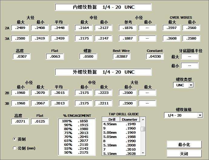 2、包含的螺纹标准非常全面,既有国内的,也有许多国外的标准