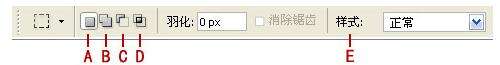E.样式:对于矩形选框工具、圆角矩形选框工具或椭圆选框工具,在选项栏中选取一个样式,
