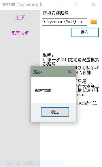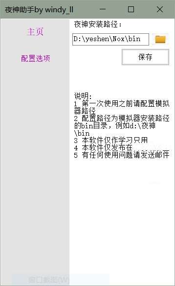 第一次使用在配置界面配置好夜神模拟器安装路径下的bin目录即可,例如E:/夜神模拟器/bin,然后点保存即可