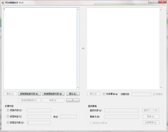 网站编辑助手有时需要从其它网站转载文章,最常见的操作便是选中,复制,粘贴,提交。而现在很多网站的后台均采用在线编辑器,编辑器会复制所选内容的样式或 HTML 元素,造成页面垃圾或影响页面布局和美观;最简单的方法就是打开记事本过滤一下。最主要的问题是有的页面文字排版很乱,如:段落后面没空行的、太多空段落的,段首没空格或段后太多多余空格的等等,这些问题对页面都有造成一定的影响,碰到很长的文章时,处理这些文字排序操作将给编辑们带来不少手工劳动,严重影响工作效率。