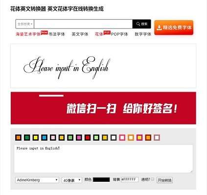 花体字转换器是跟类似的艺术字体转换差不多。花体字转换器能将标准的英文字体转换成各种好看又精美的花体字,支持转换BrannbollSmal、Ekaterina、AdineKirnberg、Beautiful、Bickham、akaFrivolity等五十五中花体字。