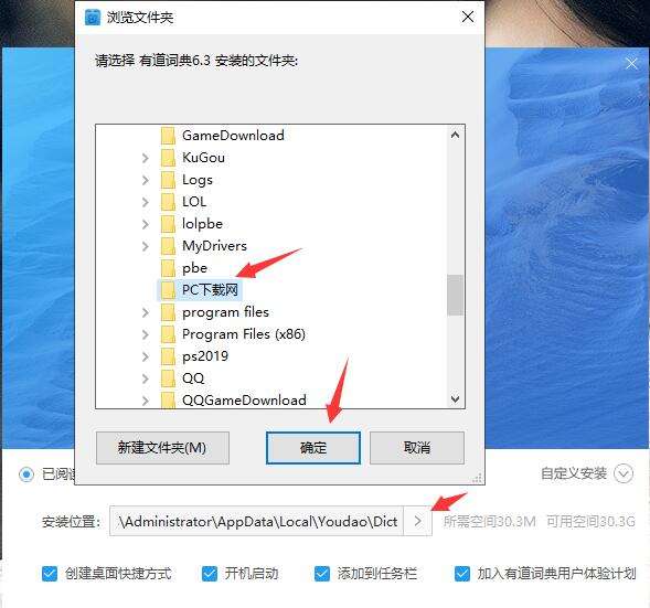3、软件默认安装位置为“C:/Users/Administrator/AppData/Local/Youdao/Dict”,小编建议点击“>"图标选择C盘以外的磁盘安装
