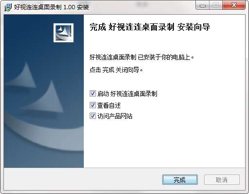 7.点击完成,好视连连桌面录制软件安装成功