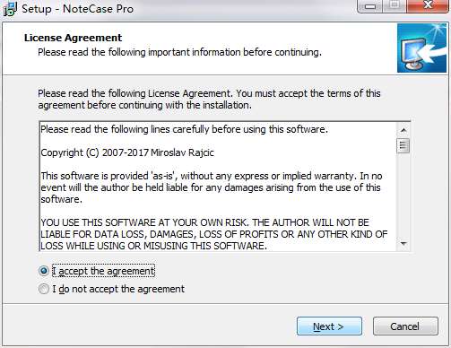 3.双击打开,进入NoteCase pro软件界面,阅读安装许可协议,点击我同意,点击下一步