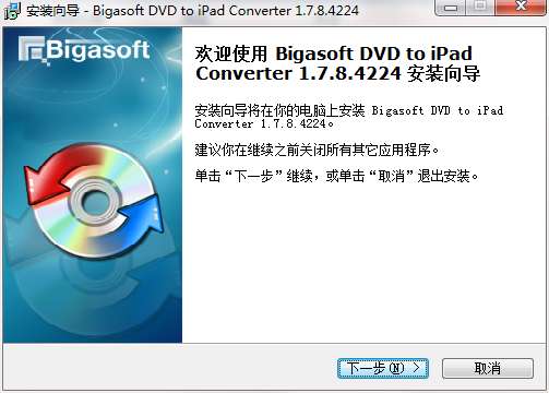 3.双击打开,进入Bigasoft DVD to ipad Converter软件界面,点击下一步