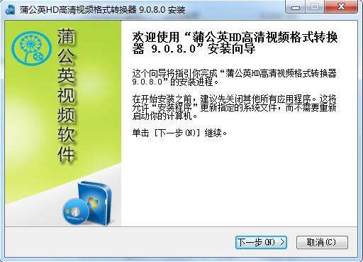 蒲公英HD高清视频格式转换器中文版正在安装,耐心等待一下