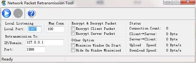 Network Packet Retransmission Tool官方版是一款可以对您指定的网络区域进行监控的工具。Network Packet Retransmission Tool最新版将使您重定向网络数据包和加密客户端或服务器的数据包在同一时间。使用Network Packet Retransmission Tool官方版时可以设置本地端口为侦听,最大允许的连接数等。
