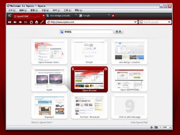 快速拨号就是可以帮助用户将自己最常访问的多个网站,依次设入“拨号面板”中,而这些网站是以缩略图形式展现出来直观明了。然后,每次启动Opera时,便可以通过这个面板,快速打开相应的网站;
