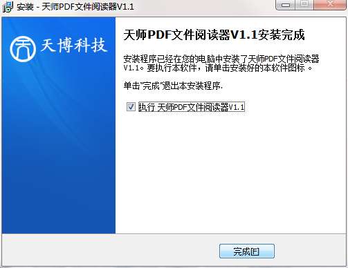 8.点击完成,天师pdf文件阅读器软件安装成功
